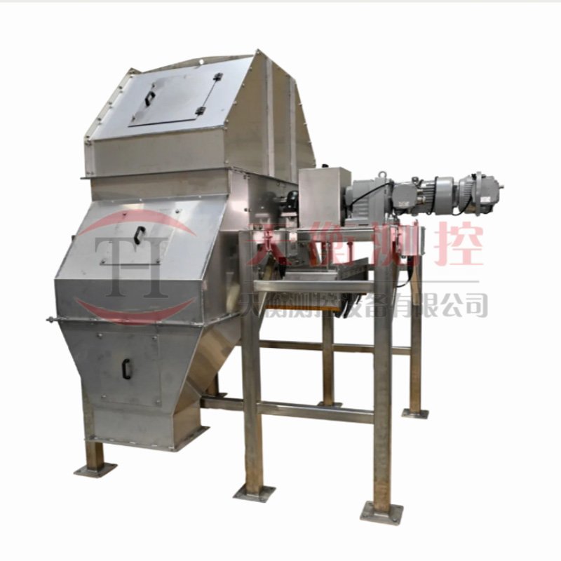 采樣裝置按設(shè)定的時(shí)間從皮帶上做全斷面刮掃,回轉(zhuǎn)運(yùn)動(dòng)式的皮帶頭旋轉(zhuǎn)運(yùn)動(dòng)由PLC控制的減速機(jī)構(gòu)完成。旋轉(zhuǎn)式采樣斗由減速齒輪傳動(dòng),皮帶機(jī)機(jī)頭部滾筒下料的以一定的轉(zhuǎn)速切割料流,物料流在物料流中流過(guò)全寬,全厚完整的子樣。采樣的字樣通過(guò)溜槽進(jìn)入初級(jí)送料皮帶機(jī),同時(shí)把樣品均勻送入破碎機(jī)破碎到一定的粒度,再通過(guò)次級(jí)皮帶及縮分器分成留樣和棄料,留樣被自動(dòng)收集在儲(chǔ)料罐中,棄料被斗式提升機(jī)返回到皮帶。當(dāng)采樣機(jī)器旋轉(zhuǎn)到一定角度時(shí),由轉(zhuǎn)鼓組、料斗、溜槽收集的原始樣品自動(dòng)進(jìn)入樣品收集器或下一級(jí)設(shè)備。采樣頭旋轉(zhuǎn)角度在一個(gè)行程結(jié)束點(diǎn),采樣周期結(jié)束;同時(shí)繼電器啟動(dòng)時(shí)間,直到下一個(gè)采樣周期,再次啟動(dòng)電機(jī),實(shí)時(shí)采樣,從而實(shí)現(xiàn)對(duì)每批物料的采樣數(shù)量控制和采樣的次數(shù)。采樣周期和采樣機(jī)的間隔由PLC系統(tǒng)控制并調(diào)整采樣間隔。